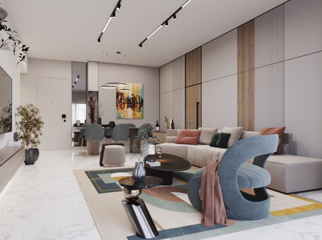 A spacious open-plan living and dining area ideal for hosting, entertainment, and daily relaxation — with direct access to the balcony for an enhanced indoor–outdoor feel.